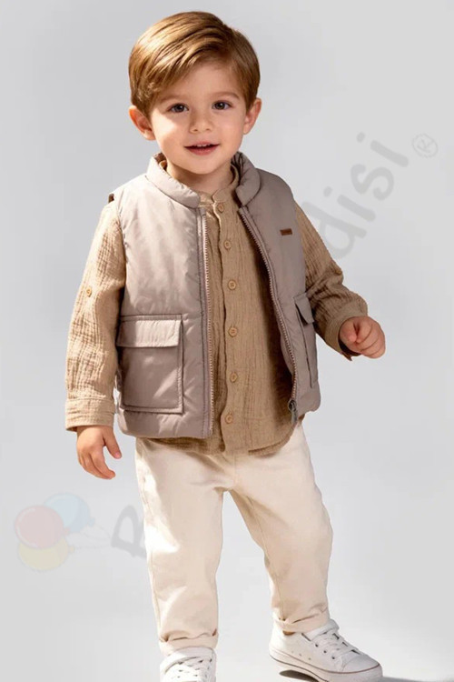 Bebek Vadisi Keten Pamuklu Şişme Yelekli Gömlekli Erkek Bebek Çocuk alt ust 3 lü Takım Kıyafetleri Bayramlık