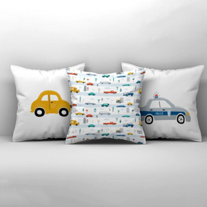 Çocuk Bebek Odası Kırlent Kılıfı Sarı Araba