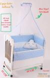 Reyo Sepet Beşik Ahşap Sallanır Beşik Anne Yanı Mavi Beyaz Örgülü Korumalık Doğal Ahşap Beşik