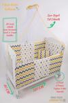 Reyo Sepet Beşik Ahşap Beşik Pembe Beyaz Gri Örgülü Korumalık Doğal Ahşap Beşik