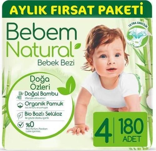 Bebem Natural Bebek Bezi 4 Beden Maxi Aylık Fırsat Paketi 180 Adet