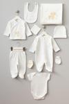 Bebitof %100 Pamuk Sevimli Ay ve Ayıcık Desenli 10 Parça Kutulu Yenidoğan Hastane Çıkışı Zıbın Seti BBTF.EKR.10103