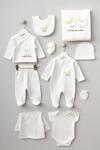 Bebitof %100 Pamuk Sevimli Kuzu Desenli 10 Parça Kutulu Yenidoğan Hastane Çıkışı Zıbın Seti BBTF.EKR.10120