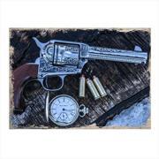 Ahşap Tablo Revolver Silah Ayrıntılar Ürün Özellikleri • Malzeme : Mdf Plaka • Mdf tablolar Yüksek çözünürlükte ki görsellserin 5 mm kalınlığında mdf plakalar üzerine UV baskı makinesi ile basılarak hazırlanır.