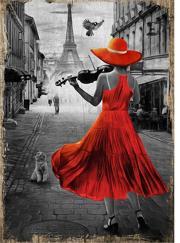 Bedeko Pariste Kırmızı Elbiseli Kadın Desenli Mdf Tablo