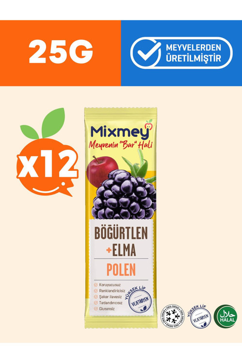 Mixmey Bee Böğürtlen Ve Polenli Meyve Bar 12 Adet | Glutensiz Sağlıklı Atıştırmalık - 25gr X 12 Adet