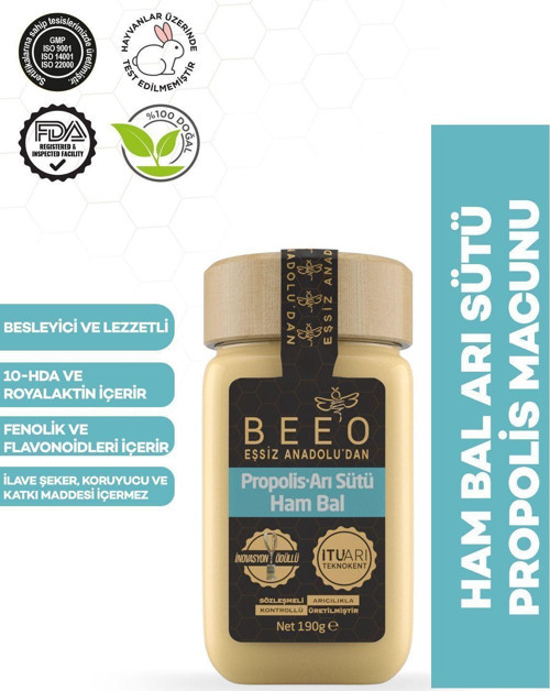 Ürün içeriği: Saf Anadolu Propolisi (%1,5), Arı Sütü (%3), Ham Bal (%95,5)