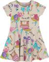 Bej Chirping Animals Kız Çocuk Desenli Kısa Kollu Elbise