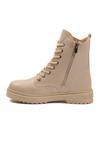 Bej Cilt Kürklü Bağcıklı Fermuarlı Kaymaz Kadın Bot 525383 Z