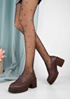 Bej Cilt Topuklu Loafer Mokasen Toka Kadın Ayakkabı