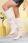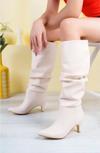 Bej Körüklü İnce Topuklu Günlük Kadın Çizme