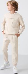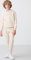 Tommy Life Bej Pamuklu Kalın İçi Tüylü Yumuşak Dokulu Standart Fit Baskılı Erkek Çocuk Eşofman Takım - 11257
