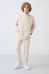 Tommy Life Bej Pamuklu Kalın İçi Tüylü Yumuşak Dokulu Standart Fit Nakışlı Erkek Çocuk Eşofman Takım - 11256