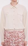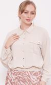 Bej Yaka Cep Detay Ceket