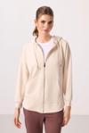 Tommy Life Bej Yumuşak Dokulu Kapüşonlu Oversize Kadın Tunik Sweatshirt - 97302