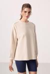 Bej Yumuşak Dokulu O Yaka Oversize Kadın Tunik Sweatshirt - 97303