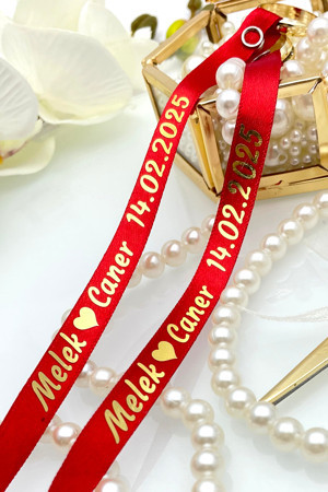 Söz Nişan Yüzük Kurdelesi - Dökülmeyen İnci-Altın Yazı (1 Adet) Bordo 42273