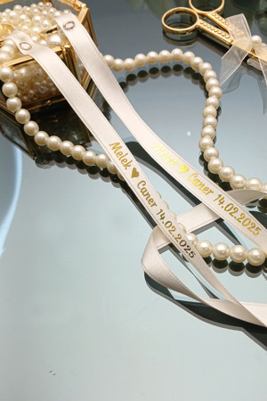 Söz Nişan Yüzük Kurdelesi - Dökülmeyen İnci-Altın Yazı (1 Adet) Beyaz 42271