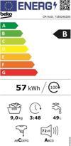 9 kg çamaşır makinesi yıllık olarak 195 KWH enerji tüketimi, yıllık olarak 11659 lt su tüketimi, 54 DB yıkama sesi, 72 DB sıkma sesi ile B sınıfı enerji sınıfına girer.