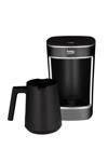 Tkm 2341 Keyf-i Bol Siyah Türk Kahve Makinesi • Kompakt & şık tasarım • Aynı anda 5 fincan Türk kahvesi yapabilme • Tek dokunuşla kolayca kahve pişirme • Ölçü kaşığı & Uyarı ışığı • Dökülmeyi Önleme teknolojisi taşmayı • Susuz çalışmayı engelleyen güvenlik sistemi • Sesli uyarı • Cezve hem sol de sağ elle kullanıma • Cooksense Teknolojisi ile bol köpüklü, taşmayan gerçek Türk kahvesi lezzeti.