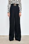 Bel Aksesuarlı Bol Paça Pantolon - Siyah
