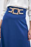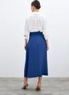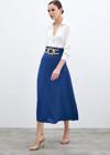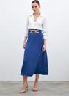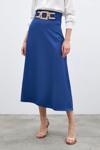 Yüksek bel, arka bel fermuarlı, midi boy, bel birleşik aksesuarlı saten krep etek.