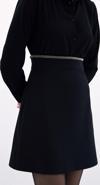 Yüksek bel, arka fermuarlı, bel boncuk aksesuarlı mini etek.