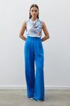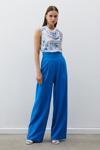 Yüksek bel, yan fermuarlı, cepli, bol paça, bel dataylı pantolon.