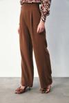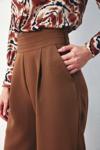 Bel Detaylı Geniş Paça Pantolon - Bej - Image 1