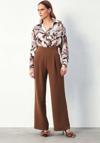 Sateen Bel Detaylı Cepli Pantolon - Kahve