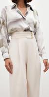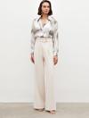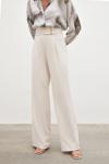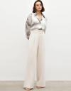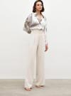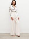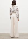 Yüksek bel, yan fermuarlı, bel detaylı ve süs düğmeli, bol paça pantolon.