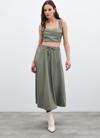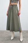 Yüksek lastikli bel, midi boy, şardonsuz, salaş deri etek.