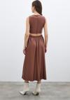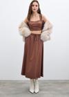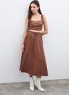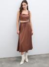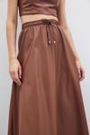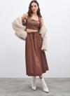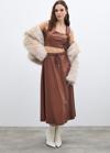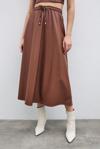 Yüksek lastikli bel, midi boy, şardonsuz, salaş deri etek.