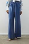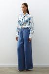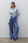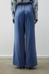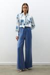 Lastikli yüksek bel, salaş model, parlak uzun pantolon.