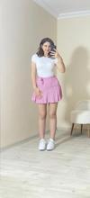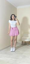 Mihrim Butik Belden Bağlama Detaylı Şort Etek Beyaz Pembe