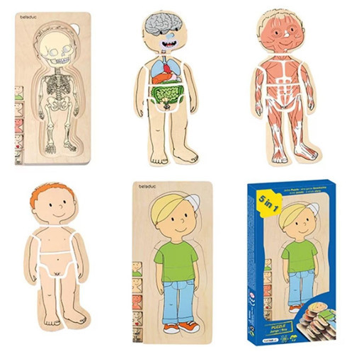 Beleduc Katlı Puzzle Erkek, çocukların insan vücudunu eğlenceli ve keşif dolu bir şekilde öğrenmelerine yardımcı olan çok katmanlı bir ahşap yapbozdur. İnsan anatomisini katman katman sunan bu yapboz, iskelet, organlar, kaslar, deri ve giydirilmiş haline kadar vücudun farklı katmanlarını öğretir. Bu eğitici ve renkli yapboz, çocukların insan bedenini ve kız-erkek çocuklar arasındaki anatomik farklılıkları anlamalarına yardımcı olacak şekilde tasarlanmıştır.