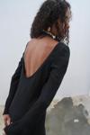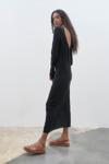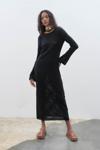 Siyah renginin asaletini yansıtan bu elbise, tüm sezonlarda tercih edilebilirliği korur.