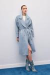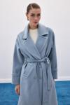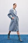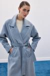 Bu mavi renkli kaban, stil sahibi kadınların gardırobunda yer alması gereken bir parçadır.