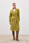 Beli Bağlamalı Uzun Kaban - Yağ Yeşili