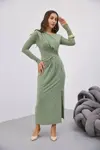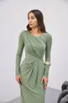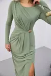 BELİ BÜZGÜLĞ TOKALI ELBİSE