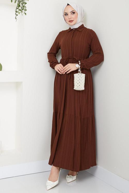 Eva Ayrobin Tesettür Elbise Kahverengi HM2454 - Image 1
