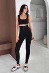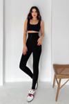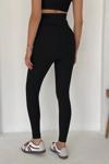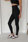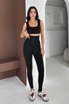 Beli Korse Detaylı Fitilli Tayt Siyah