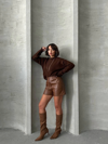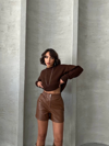 Şıklığı ve rahatlığı bir arada sunan Beli Lastikli Çıtçıtlı Deri Şort ile tarzınızı konuşturun. Kahve rengi ve deri dokusu ile şıklığı ön plana çıkan bu şort, günün her anında şık ve rahat bir görünüm sağlar.
