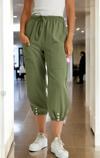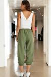 Beli Lastikli Düğme Detaylı Keten pantolon