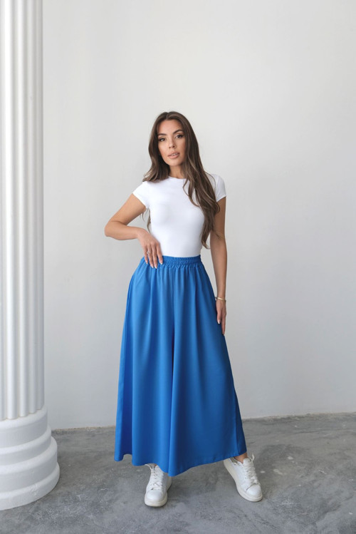 Beli Lastikli Geniş Kesim Kloş Pantolon Etek - Mavi