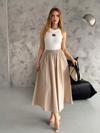 Yaz kombinlerine hem rahatlık hem stil katan beli lastikli paraşüt kumaş etek, Hafif yapısı sayesinde sıcak havalarda terletmez, nefes alan kumaşıyla gün boyu konfor sağlar.Lastikli beli ile her bedene uyum sağlayan bu model, oversize tişörtler, crop bluzlar ya da spor ayakkabılarla mükemmel bir uyum yakalar. Tatil valizlerinin ve günlük şehir stilinin vazgeçilmez parçası olmaya aday bu etek, özgür ve rahat tarzı seven kadınlar için tasarlandı.
