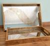 Beliza Ahşap Kenarlı Desenli İkili Servis Tepsi Seti