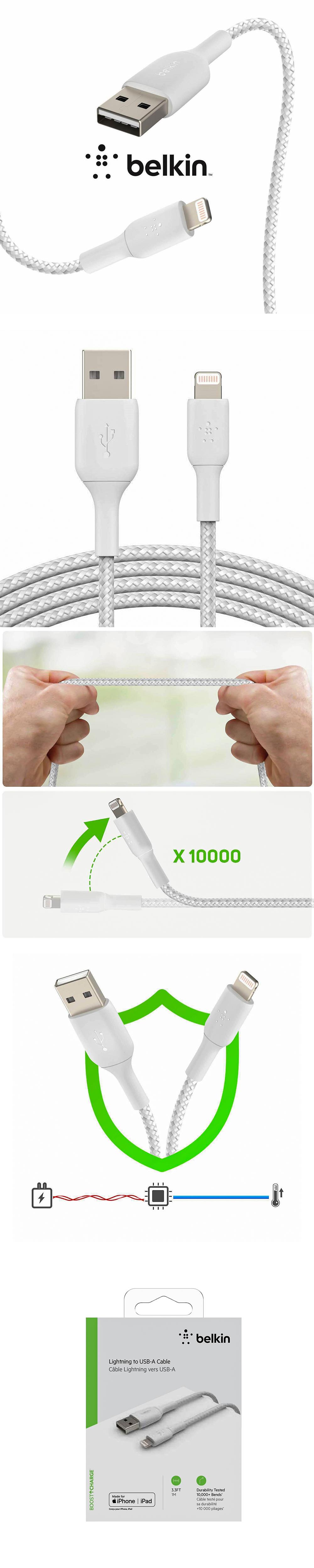 Belkin Boost Charge UsbA to Lightning Örgülü MFİ Lisanslı Hızlı Şarj ve Data Kablosu 1M Beyaz