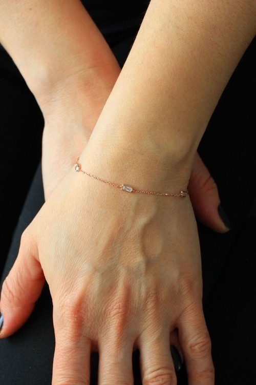 - Bella Gloria Baget Taşlı Su Yolu Rose Gümüş Bileklik (TGB0274).