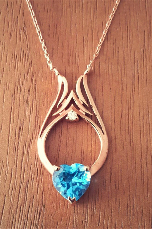 Pırlantanın ışıltısı ve yarı değerli taşların renk uyumu! Hem modern hem de abiye olarak kullanabileceğiniz bu şık Kolye ışıltılı pırlantalar ve Mavi Topaz ile özel olarak tasarlandı.